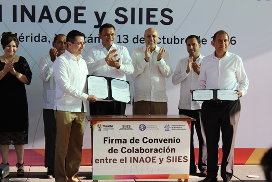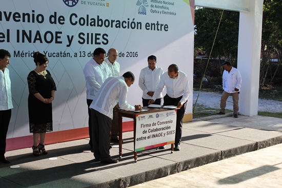 El pasado 13 de octubre, el Dr. Leopoldo Altamirano Robles, director General del INAOE, firmó un convenio de colaboración con la Secretaría de Investigación, Innovación y Educación Superior (SIIES) del Gobierno del Estado de Yucatán. Este convenio tiene por objetivo alentar las acciones que conduzcan al fortalecimiento del quehacer científico y tecnológico en las áreas de interés mutuo, tales como la formación de recursos humanos, desarrollo de proyectos e investigación básica y aplicada.